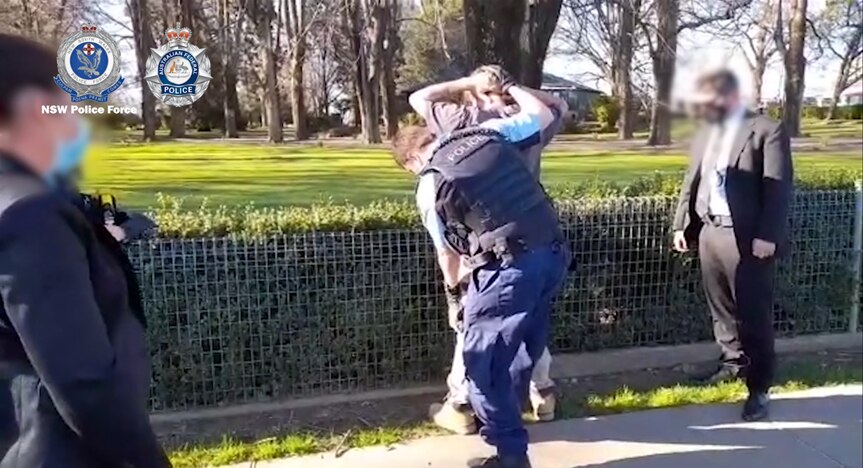 Video released by the group showed the man being arrested on one of the busiest suburban streets in Orange, on the footpath of a park popular with families and tourists.