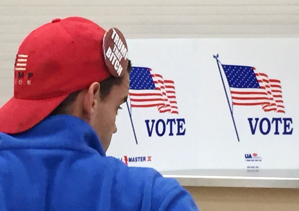 The law is enforced with workers at the polling places who either ask the voter to cover or remove the offending clothing or item. Otherwise, he can still vote but will have his name taken down for possible fine later _ but such a fine hasn't happened, Rogan said.