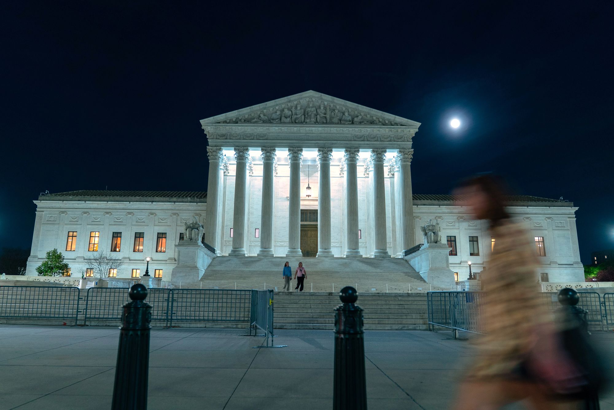 11:55 , Alex LangImages show a quiet night at the Supreme Court, before a historic day when Donald Trump becomes the first president to attend arguments