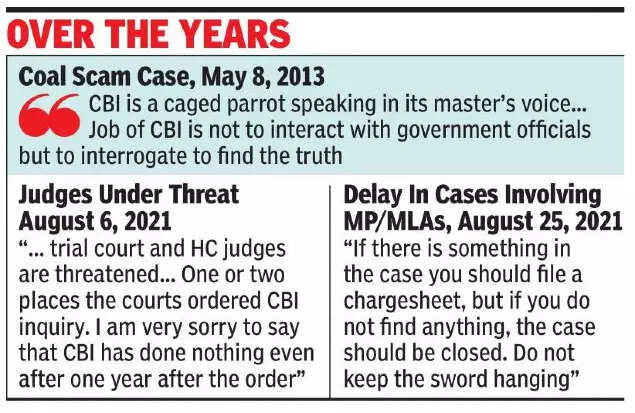 A bench of Justices Sanjay Kishan Kaul and M M Sundresh said that it is not enough for the agency just to lodge a case and conduct probe and but also to ensure that prosecution is successfully done. The SC is examining the efficiency of prosecuting wing of the CBI as it had earlier noted that there was “a saga of gross negligence in performing duties” resulting in inordinate delay in filing of cases in courts and had sought response from its director.