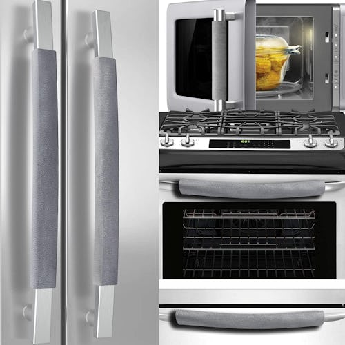 The door handles on your stainless steel refrigerator are likely the first things to get covered in grime and fingerprints. These velvety microfiber handle covers slip over them to keep them clean. Velcro makes them simple to add and secure, and the gray color blends nicely with stainless steel, making them a pretty seamless addition.