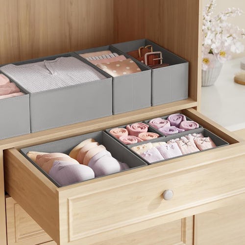 These drawer organizers will completely transform your dresser. They come in four sets of three nesting sizes that can hold everything from sweaters to socks, making them easy to configure within your unique space so not an inch gets wasted. Made from cardboard and covered in soft fabric, they can even be folded up when not in use for hassle-free storage. (And then whipped right back out again when needed.)