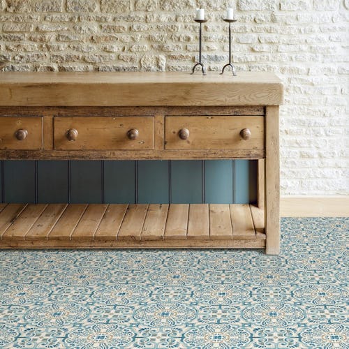 Disguising worn or out-of-style flooring doesn’t require a total reno — these tiles look like the real deal but are actually installed via a sticky adhesive backing. Ten tiles come included, they’re permanent once in place, and no grout or special tools are needed. This is the blue, but a gray version can be found in the listing.