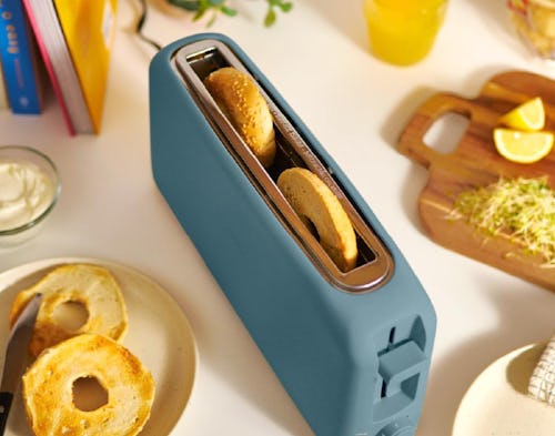 This slim toaster is perfect for taking advantage of otherwise unused narrow spaces in your kitchen. It measures just over 3.5 inches wide but is long enough to accommodate two slices of bread, bagels, or English muffins side by side. The matte, color-drenched finish makes for a surprisingly chic touch, too.
