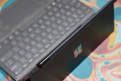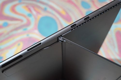 The Surface Pro 8 drops the Pro 7’s USB-A and USB-C port for two Thunderbolt 4 USB ports. Yes, this means you’re gonna need dongles to connect USB-A accessories, but it also means the ports are fast. Each of the Thunderbolt 4 ports is capable of 40Gbps data transfers. And unlike on MacBooks, the Thunderbolt 4 ports are spaced apart enough to accommodate larger-than-normal USB-C plugs. There’s also a magnetic Surface Connect port on the right and a headphone jack on the left — Microsoft thankfully didn’t summon any courage to remove them.