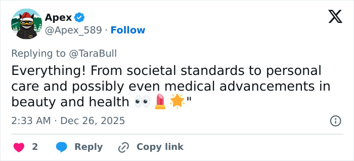 “People stopped drinking and sm*king so much, and better skincare and health care overall,” someone else chimed in.