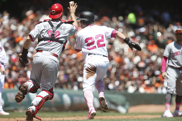 The Giants took advantage of a mistake and an ailing pitcher to bat around in the first inning. Span reached on a two-base error when Reds right fielder Scott Schebler dropped a fly ball. Joe Panik doubled Span home, and scored when Buster Posey singled past a drawn-in infield. After a pair of walks from Tim Adleman, Nunez sprayed a two-run single through the left side.