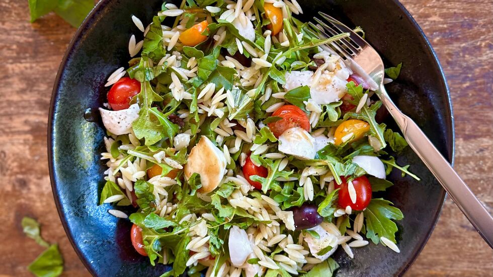 Serve the salad slightly warm or at room temperature. You can cook the orzo in advance and refrigerate until assembling the salad.