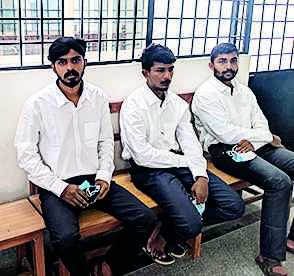 According to an advocate, the seven men walked into the court premises around 11.15am. They were clad in white full-arm shirts and black trousers. The only giveaway was none of them wore black shoes. Theywalked in a space of a few minutes and assembled outside court hall 37. Some sat on the benches placed outside the hall. Their advocate went inside the court and explained that his clients wanted to surrender.