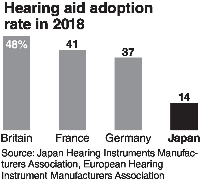 Only about 14 percent of people with a hearing impairment use hearing aids in Japan, far lower than in the United States and European countries, according to a survey by the Japan Hearing Instruments Manufacturers Association (JHIMA).