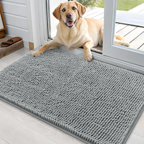 An absorbent chenille mat that keeps muddy paw prints off your floors
