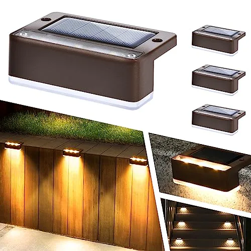 SOLPEX Solar Fence Lights, 6 LEDs Solar Lights Outdoor Waterproof Solar Powered for Deck, Stair, Front Porch, Balcony, Walkway, Garden, Yard, Patio, Pool Decor, IP65 Waterproof (4 Pack, Warm White)