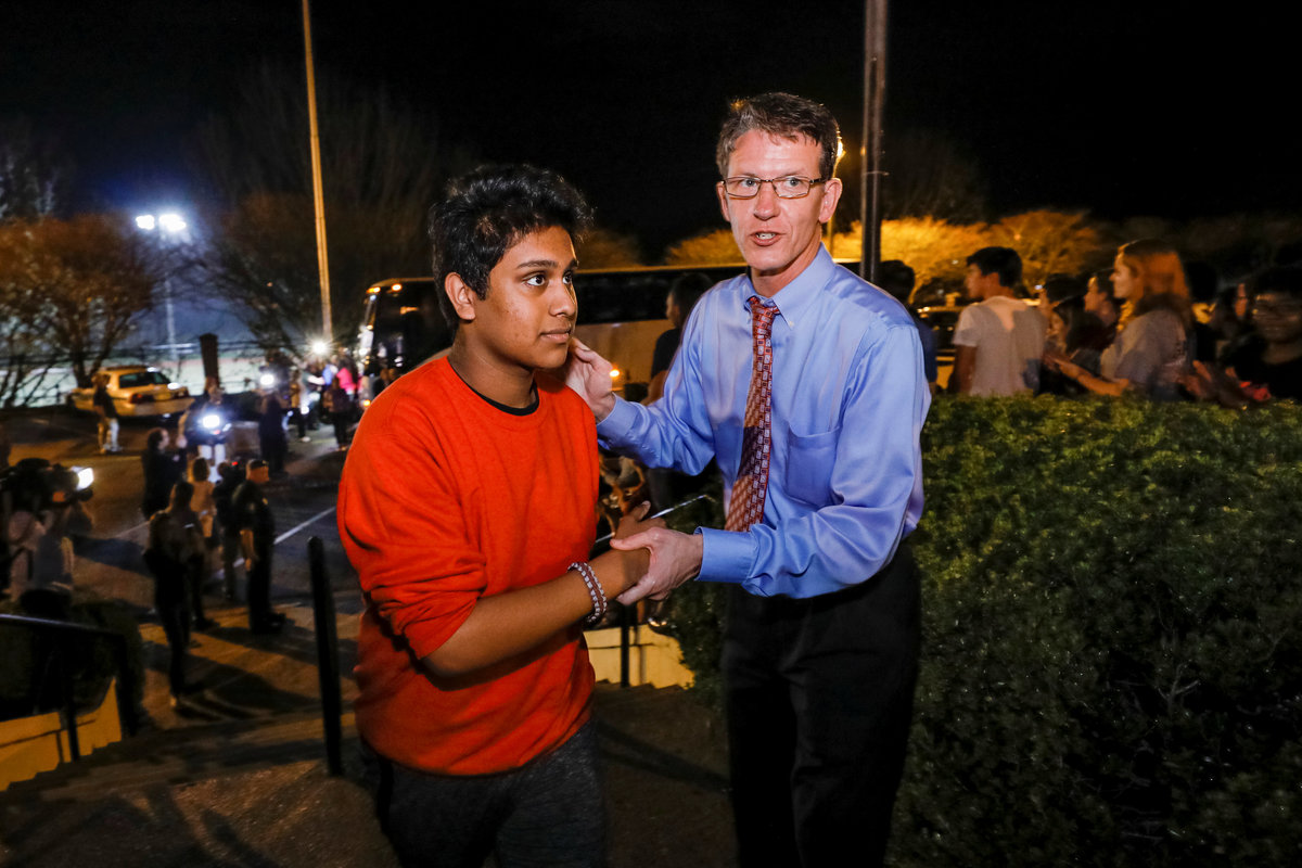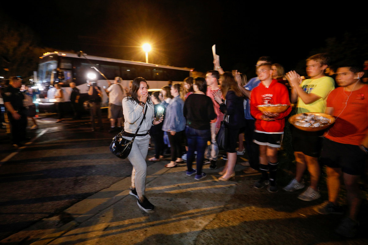 Students from the South Florida high school were tearful as they stepped down from the bus in Tallahassee to be welcomed with waves, cheers and sombre applause from fellow teens.
