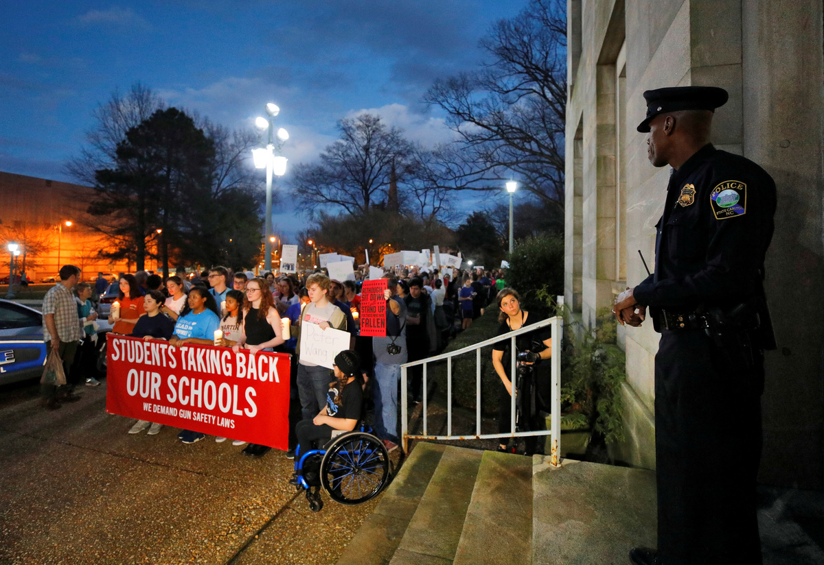 "I am not going back to school until lawmakers, and the president, change this law," said Tyra Hemans, a 19-year-old senior, who travelled to the state capital.