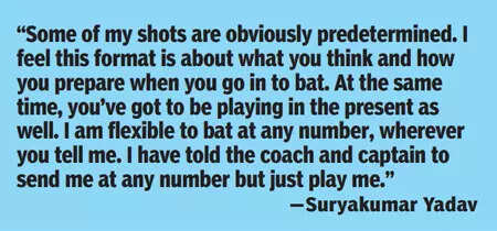 Ramps, sweeps, inside-out shots over covers, guides between point and short-third or the usual lofted hits over the bowler’s head, it appeared Surya wanted to bare his armoury in whatever little time he had in the middle.