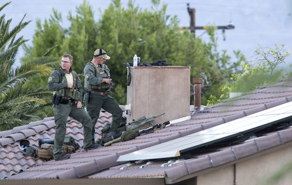 "Almost immediately ... the suspect emerged out the back door," said Riverside County Sheriff's Chief Deputy Ray Wood. "When he emerged, he was wearing soft body armor and he had a number of high-capacity magazines on his person."