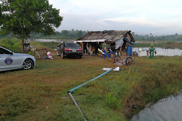 Crime Suppression Division (CSD) police surrounded a makeshift shelter at the shrimp pond in tambon Bang Riang at around 6am on Tuesday after tracking down a key suspect involved in the killing of a man in Krabi last September.
