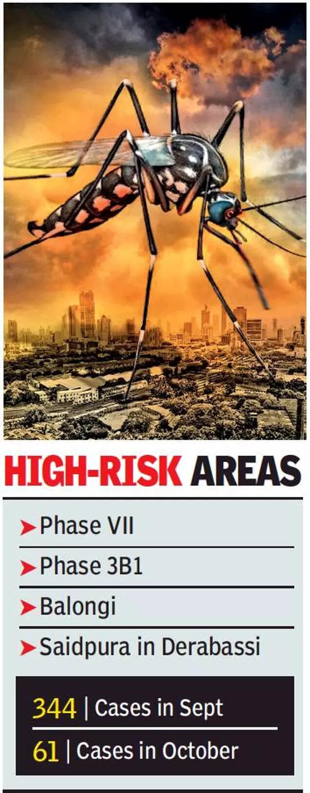 Kaur said there was an alarming rise in the number of dengue cases. “Take precautions at individual level as the administration is doing its bit to curtail the outbreak. We have already declared four-high risk areas at Phase VII, Phase 3B1, Balongi and Saidpura, Derabassi,” she said.
