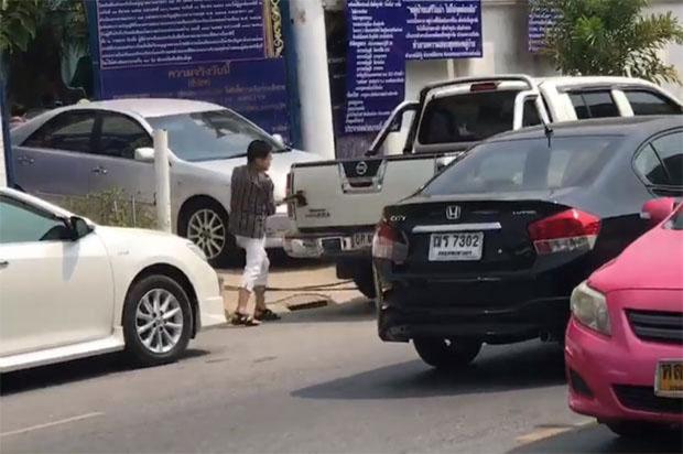In November last year, Ratchaneekorn Lertwassana, 38, who parked the pickup truck in front of their house was sentenced to 15 days in jail, suspended for one year, and fined 5,000 baht for causing a public disturbance.