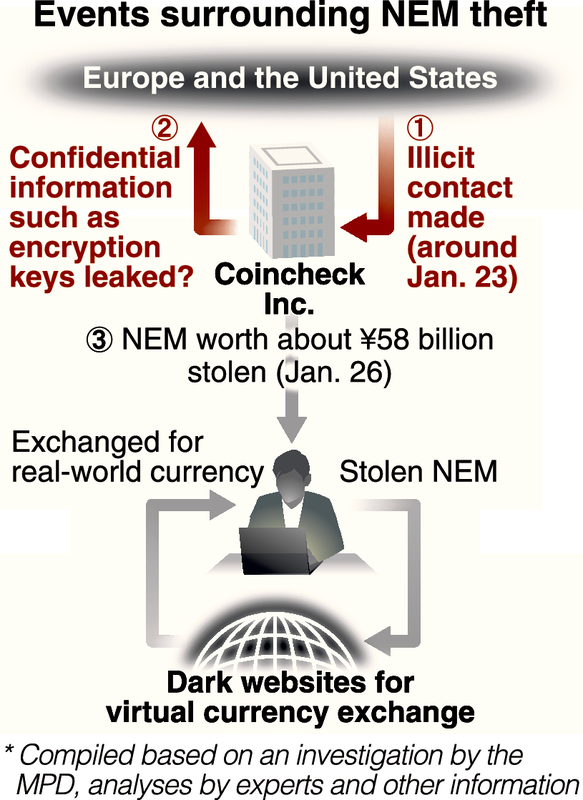 On Jan. 26 -- several days after the suspicious contacts -- the 58 billion yen worth of NEM was stolen from the operator.