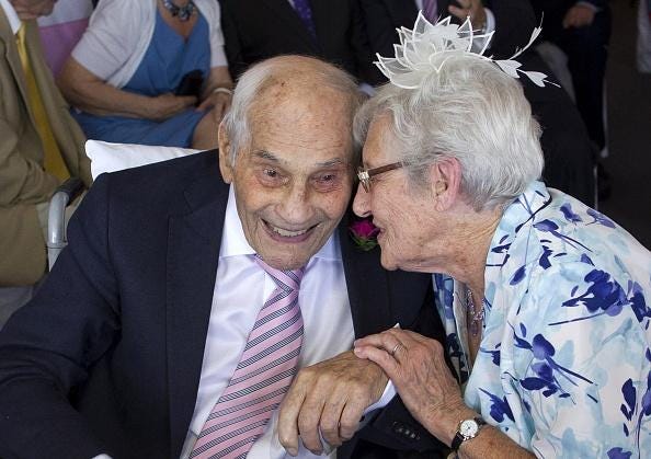The couple beat the previous record which was held by François Fernandez - born in France in 1906 - and Madeleine Francineau - born in 1907 also in France - who married at the age of 95 years 290 days, and 94 years 201 days respectively. The combined age between the couple at the time of their wedding was a record 190 years 126 days.