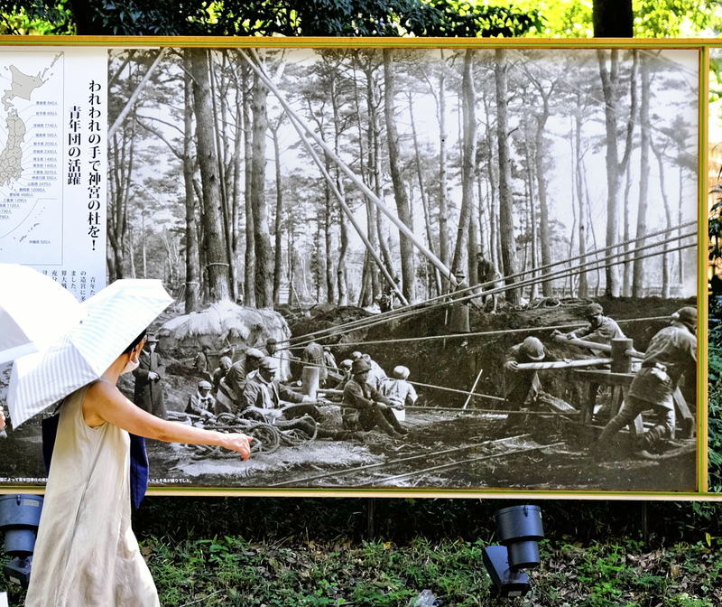 According to Tadashi Matsui of the shrine's administration department, the foresters who were involved in the creation started the forest with conifer trees, with a focus on pines. They then planted a mixture of evergreen broad-leaved trees such as Japanese oaks and camphor trees.