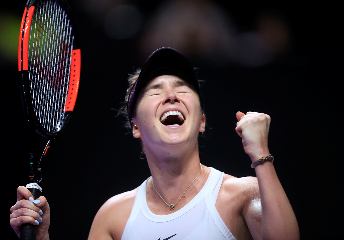 HONG KONG (Reuters) - Defending champion Elina Svitolina became the first player to secure a semi-final spot at the WTA Finals on Wednesday with a straight sets win over Simona Halep while Bianca Andreescu retired injured in her meeting with Karolina Pliskova.