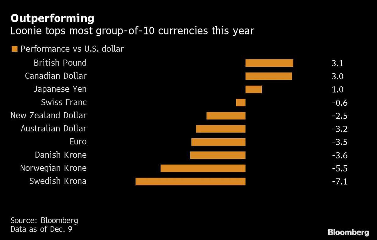 The Canadian dollar’s outperformance this year stunned many, but strategists are not expecting a repeat in 2020 -- casting doubt on its run as one of the best major currencies.