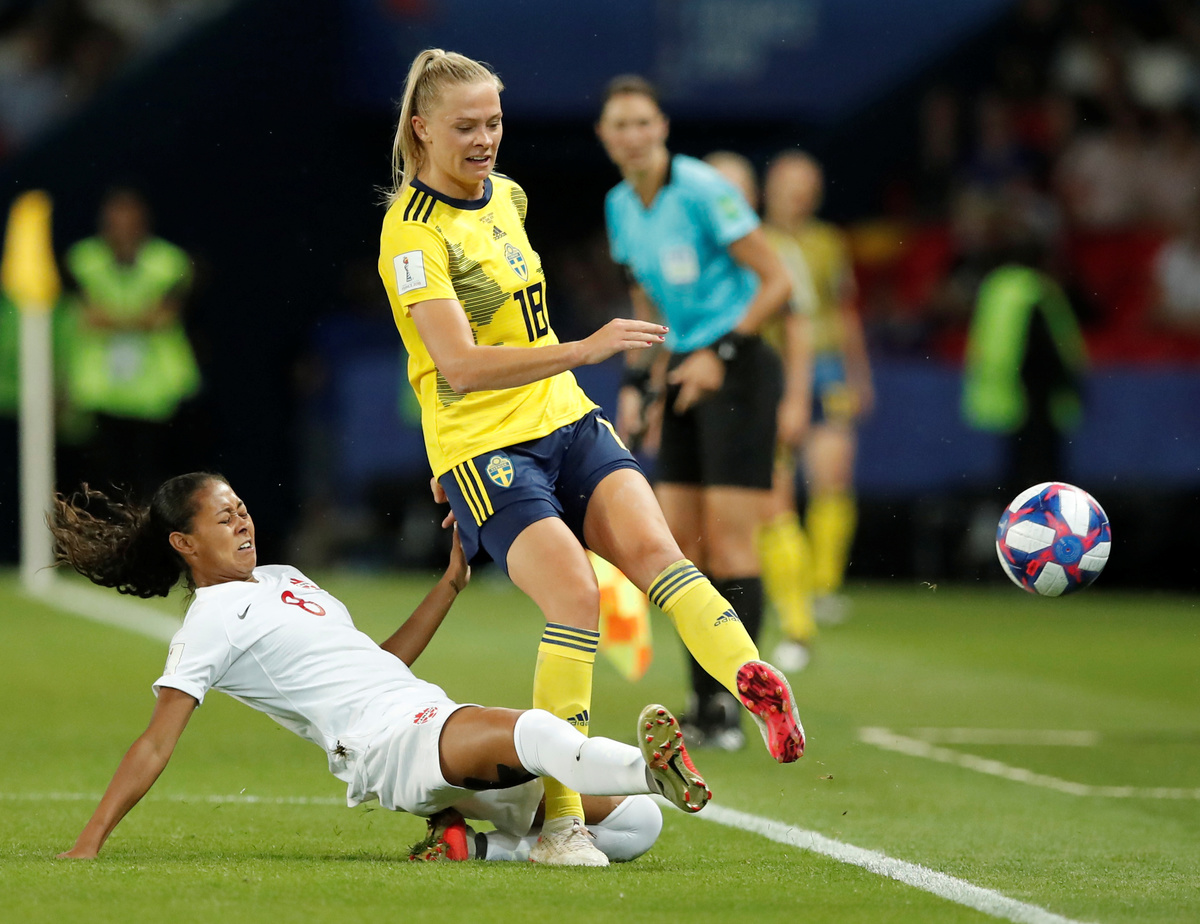 Soccer Football - Women's World Cup - Round of 16 - Sweden v Canada - Parc des Princes, Paris, France - June 24, 2019 Sweden's Stina Blackstenius scores their first goal REUTERS/Lucy NicholsonSoccer Football - Women's World Cup - Round of 16 - Sweden v Canada - Parc des Princes, Paris, France - June 24, 2019 Sweden's Fridolina Rolfo in action with Canada's Ashley Lawrence and Janine Beckie REUTERS/Benoit TessierSoccer Football - Women's World Cup - Round of 16 - Sweden v Canada - Parc des Princes, Paris, France - June 24, 2019 Sweden's Hanna Glas in action with Canada's Janine Beckie REUTERS/Lucy NicholsonSoccer Football - Women's World Cup - Round of 16 - Sweden v Canada - Parc des Princes, Paris, France - June 24, 2019 Sweden's Stina Blackstenius in action with Canada's Kadeisha Buchanan REUTERS/Lucy NicholsonSoccer Football - Women's World Cup - Round of 16 - Sweden v Canada - Parc des Princes, Paris, France - June 24, 2019 Canada's Allysha Chapman in action with Sweden's Elin Rubensson REUTERS/Lucy NicholsonSoccer Football - Women's World Cup - Round of 16 - Sweden v Canada - Parc des Princes, Paris, France - June 24, 2019 Sweden's Kosovare Asllani in action with Canada's Shelina Zadorsky REUTERS/Lucy NicholsonSoccer Football - Women's World Cup - Round of 16 - Sweden v Canada - Parc des Princes, Paris, France - June 24, 2019 Canada's Nichelle Prince in action with Sweden's Magdalena Eriksson and Caroline Seger REUTERS/Benoit TessierSoccer Football - Women's World Cup - Round of 16 - Sweden v Canada - Parc des Princes, Paris, France - June 24, 2019 Sweden's Kosovare Asllani in action with Canada's Sophie Schmidt REUTERS/Lucy NicholsonSoccer Football - Women's World Cup - Round of 16 - Sweden v Canada - Parc des Princes, Paris, France - June 24, 2019 Canada's Kadeisha Buchanan in action with Sweden's Kosovare Asllani REUTERS/Benoit Tessier