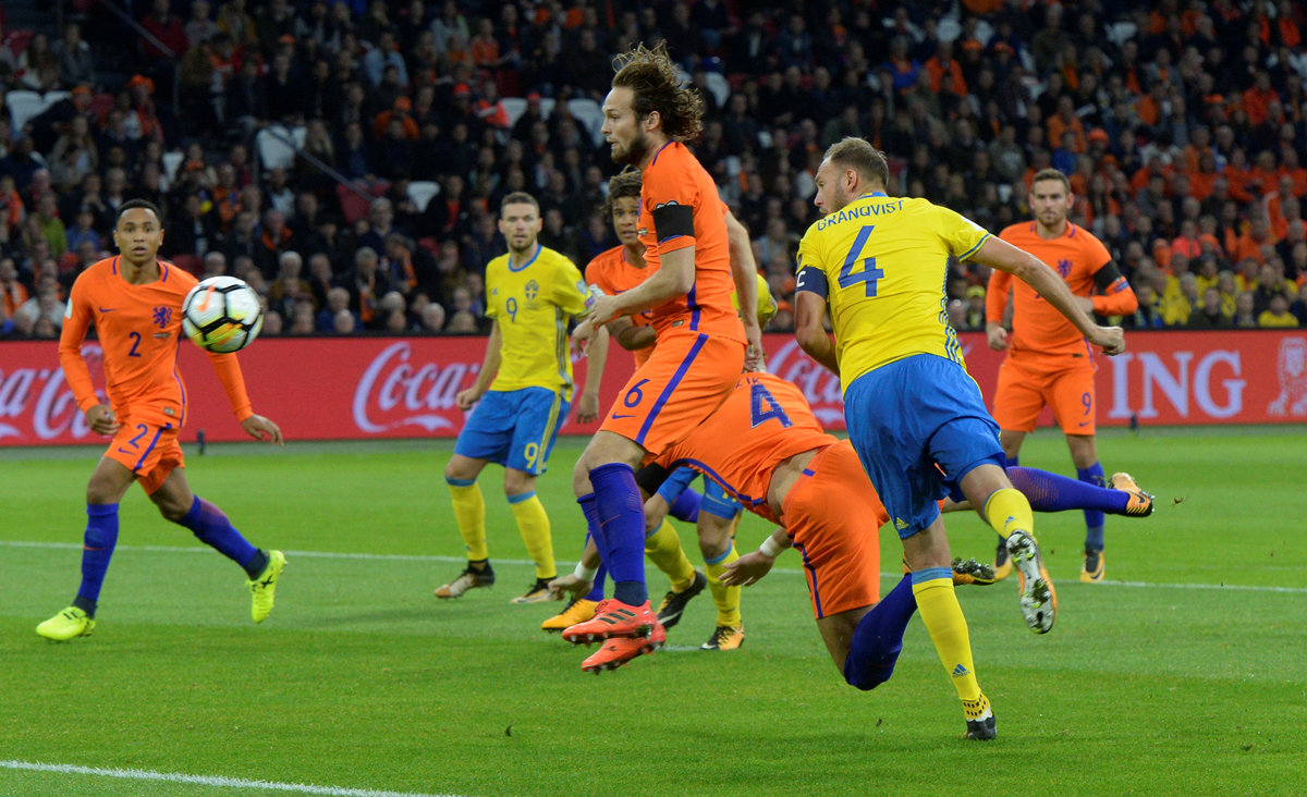 AMSTERDAM (Reuters) - Sweden claimed a World Cup playoff spot despite losing 2-0 on Tuesday away to a Netherlands side inspired by Arjen Robben who finished his international career with both goals as the Dutch bowed out.