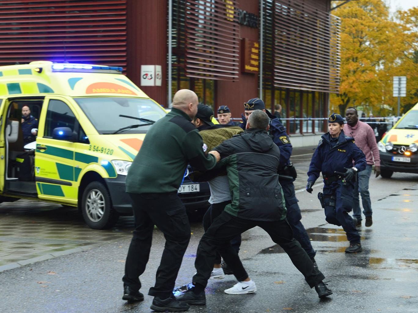 Two students, aged 11 and 15, suffered serious wounds and are undergoing surgery, Sveriges Radio reports.