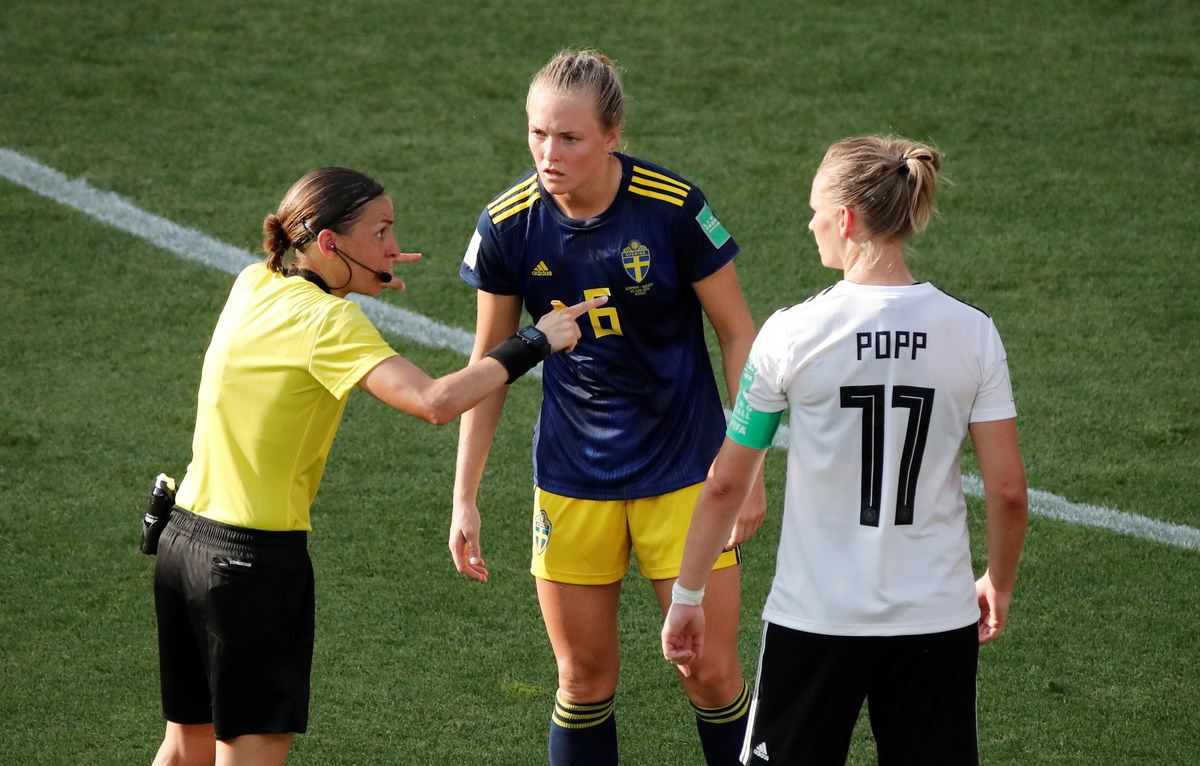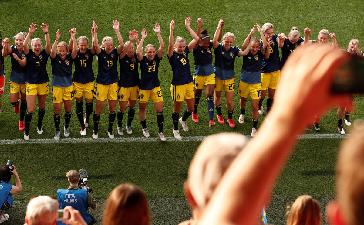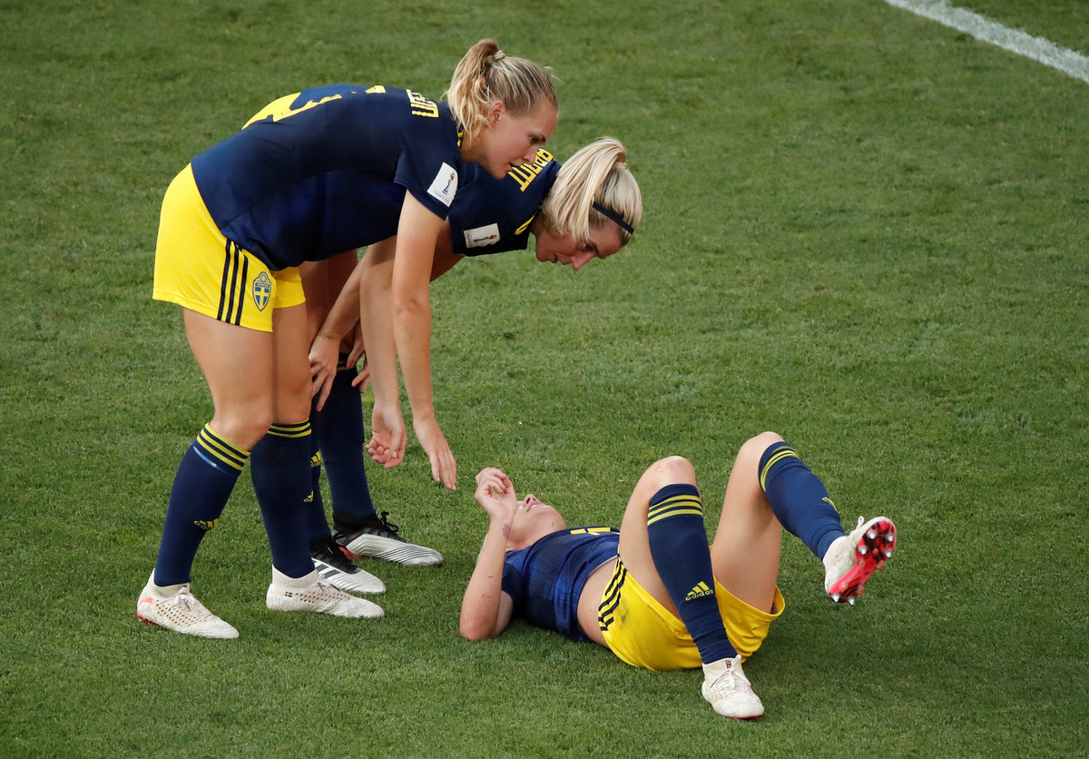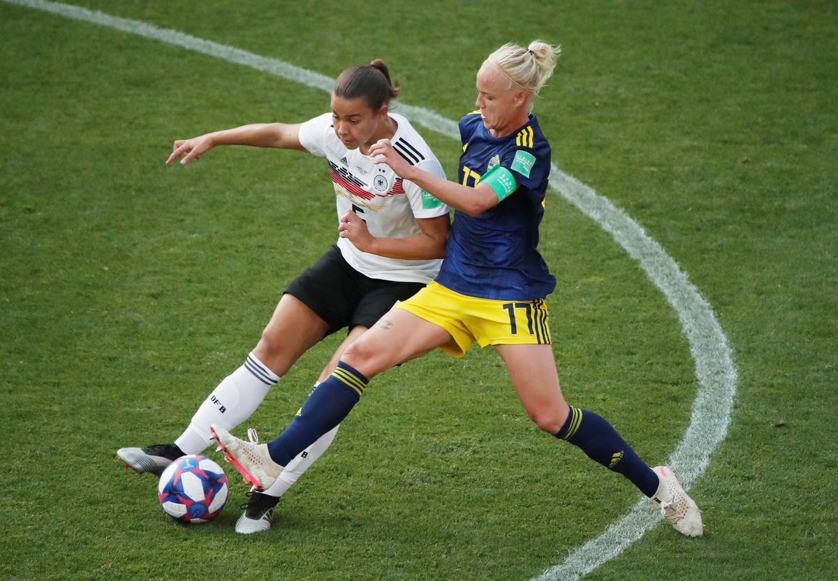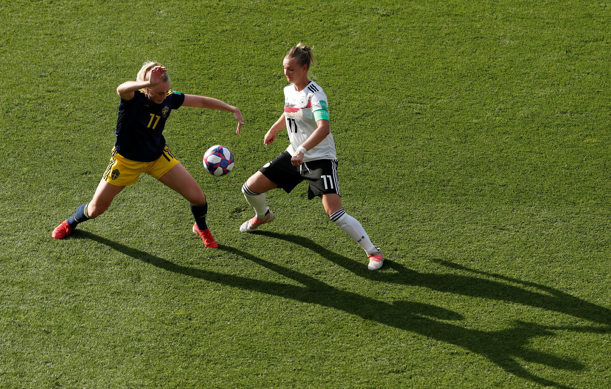 RENNES, France (Reuters) - Sweden ended Germany's hopes of a third women's World Cup win, coming from behind for a surprise 2-1 quarter-final victory on Saturday thanks to goals from Sofia Jakobsson and Stina Blackstenius.