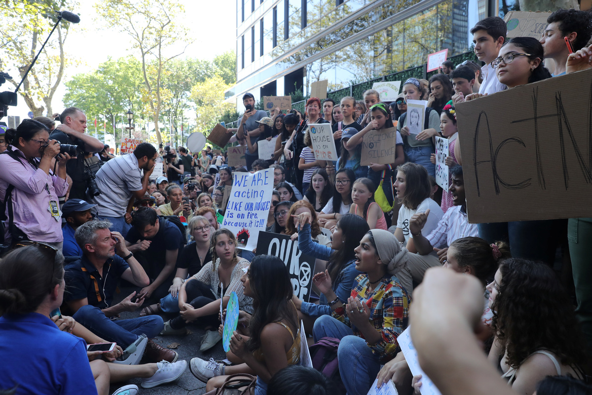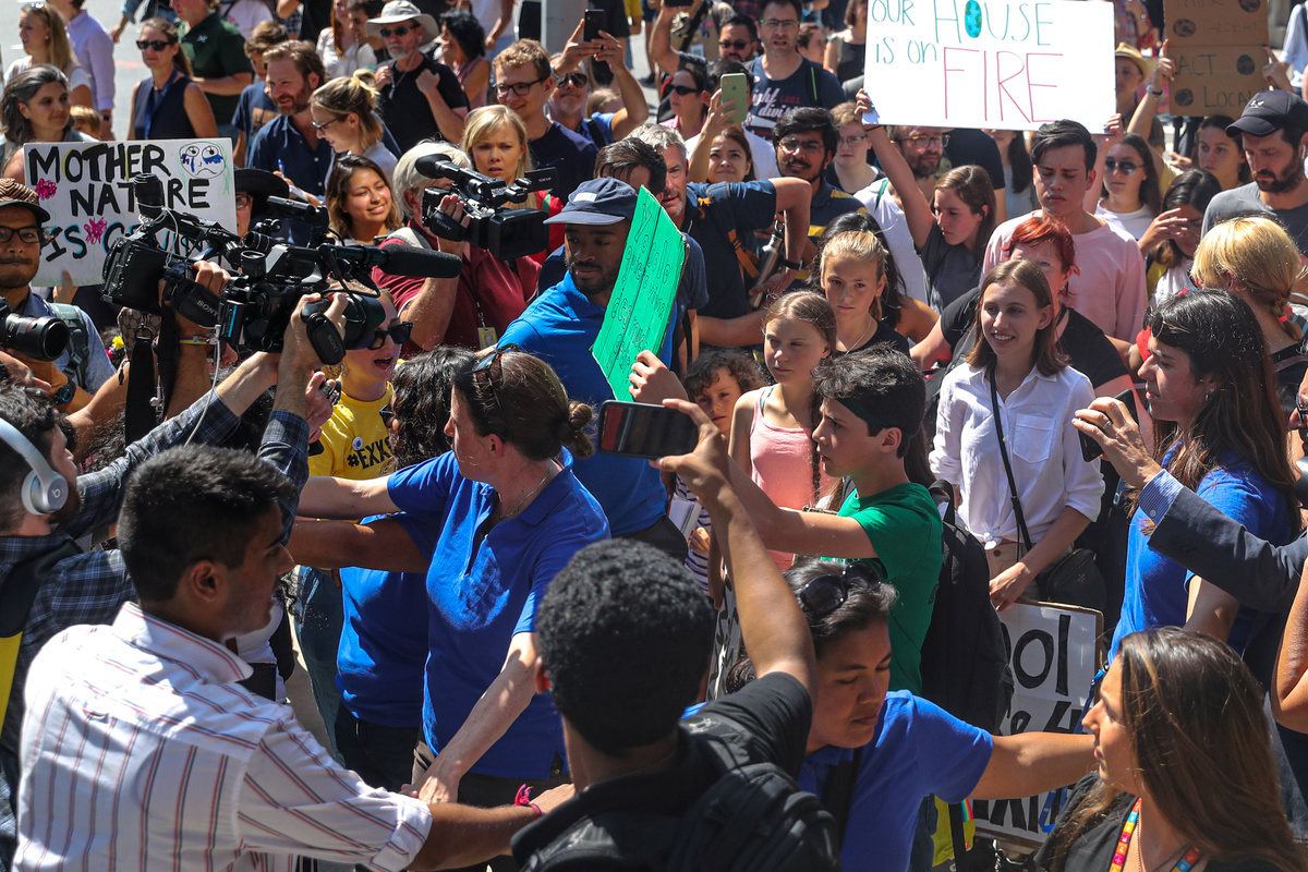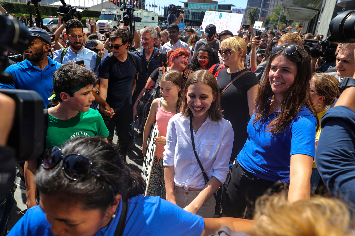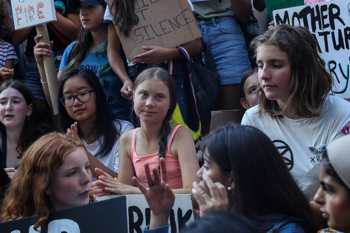 Thunberg, 16, started missing school on Fridays a year ago to protest outside the Swedish parliament, sparking a global climate strike movement known as Fridays for Future. She joined 14-year-old New Yorker Alexandria Villasenor on Friday, who began picketing outside the United Nations in New York December.