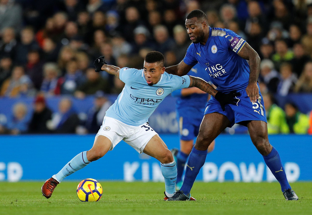 A tap-in by Gabriel Jesus and a thumping strike from Kevin de Bruyne helped Premier League leaders Manchester City beat Leicester City 2-0 on Saturday for their 16th successive victory in all competitions.