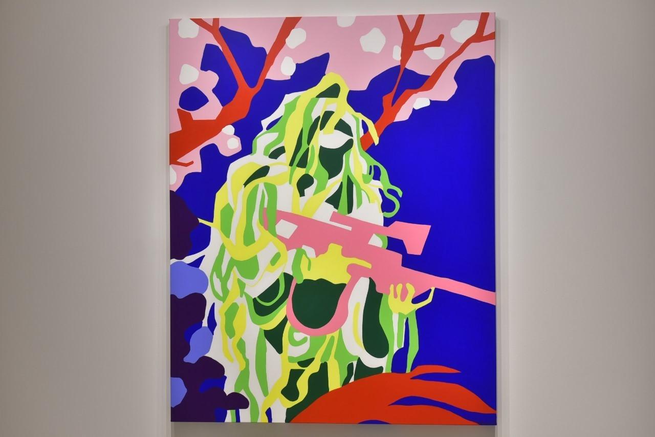 Meanwhile, the third set encompasses snipers carrying rifles with James' sinister twist. Like his first one, it still plays on the same idea of infinite war and military violence, which evokes feelings of aggression and anger. However, the last series of paintings limns James' love letters to his dear wife. In each picture, silhouetted figures of his lover in a warm colour palette depict the notions of affection, sexiness and femininity. Seemingly, the "Clean Jellybean" collection highlights the artist's emotional expression through his palette of bright, bold colours.