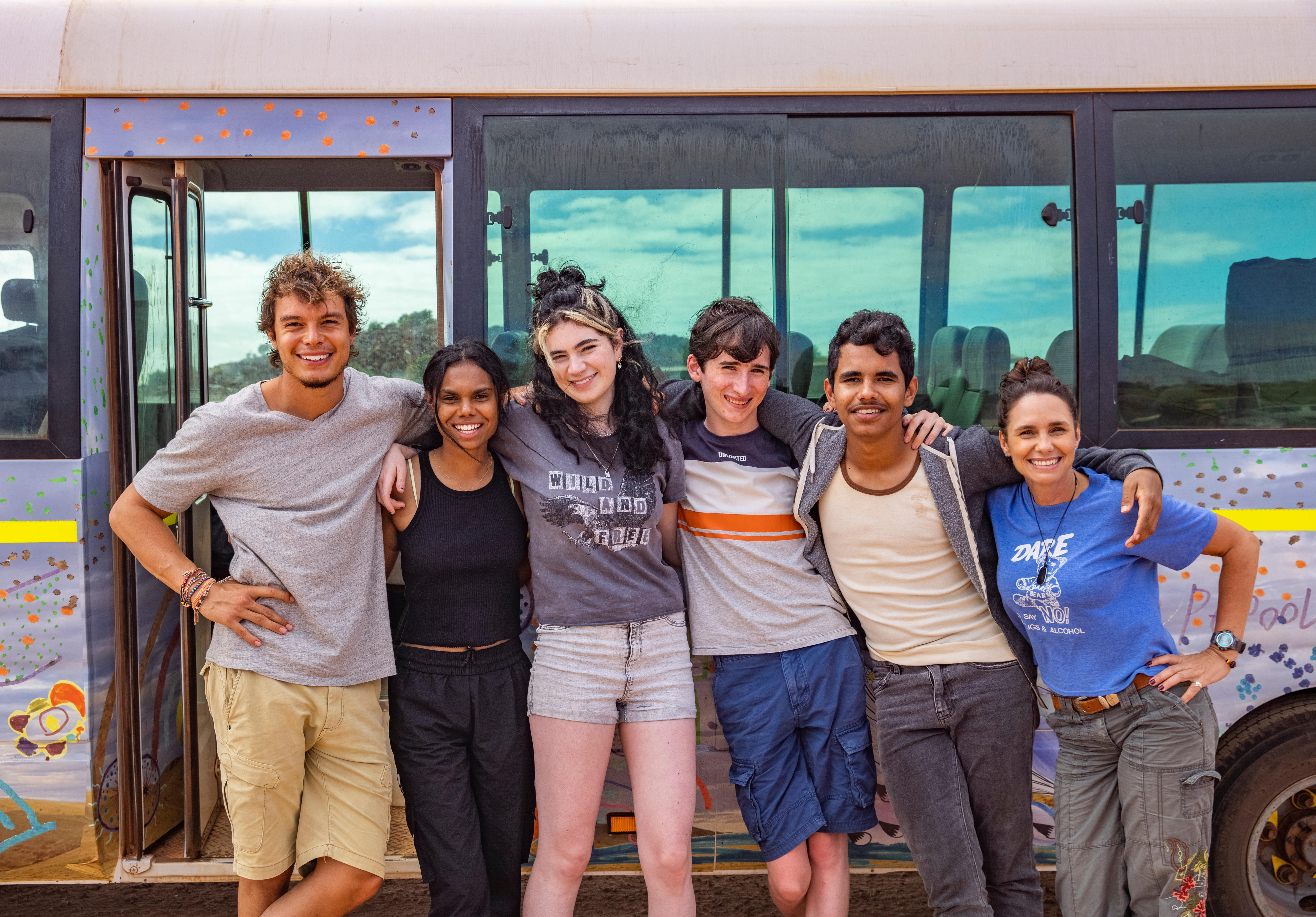 Before they hit the road, their camp counsellors – 40-something Indigenous local Mitch (Tasma Walton, Mystery Road) and 20-something Nicaragua-born backpacker Fernando (Carlos Sanson Jr) – confiscate the kids' mobile phones and arm them with retro film cameras, encouraging them to live in the moment.