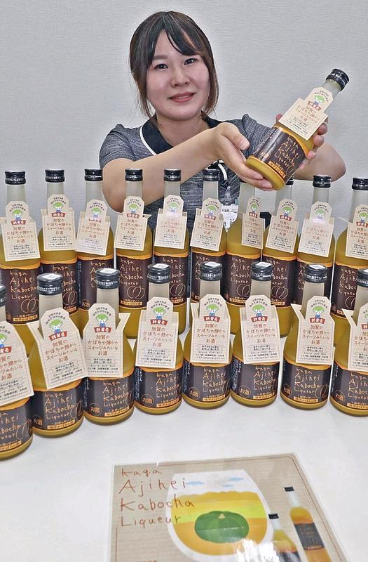 KAGA, Ishikawa -- A liqueur made from Ajihei kabocha pumpkins, a specialty fruit of Kaga, Ishikawa Prefecture, has been developed by JA Kaga, a local agricultural cooperative.