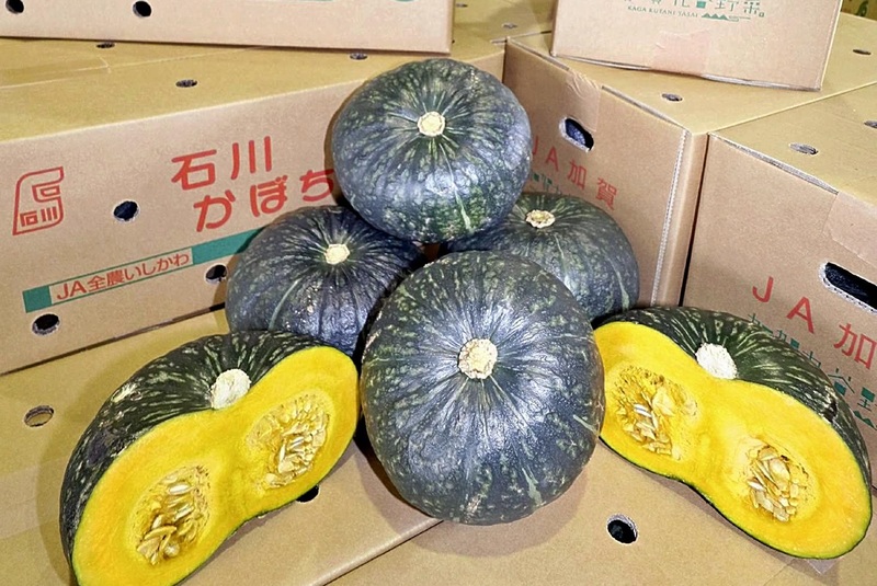 Ajihei kabocha pumpkins are featured crops among the local Kaga Kutani Yasai vegetables, and the cooperative is working on developing new products using specialty crops of sizes and other features out of standard for retail sales.