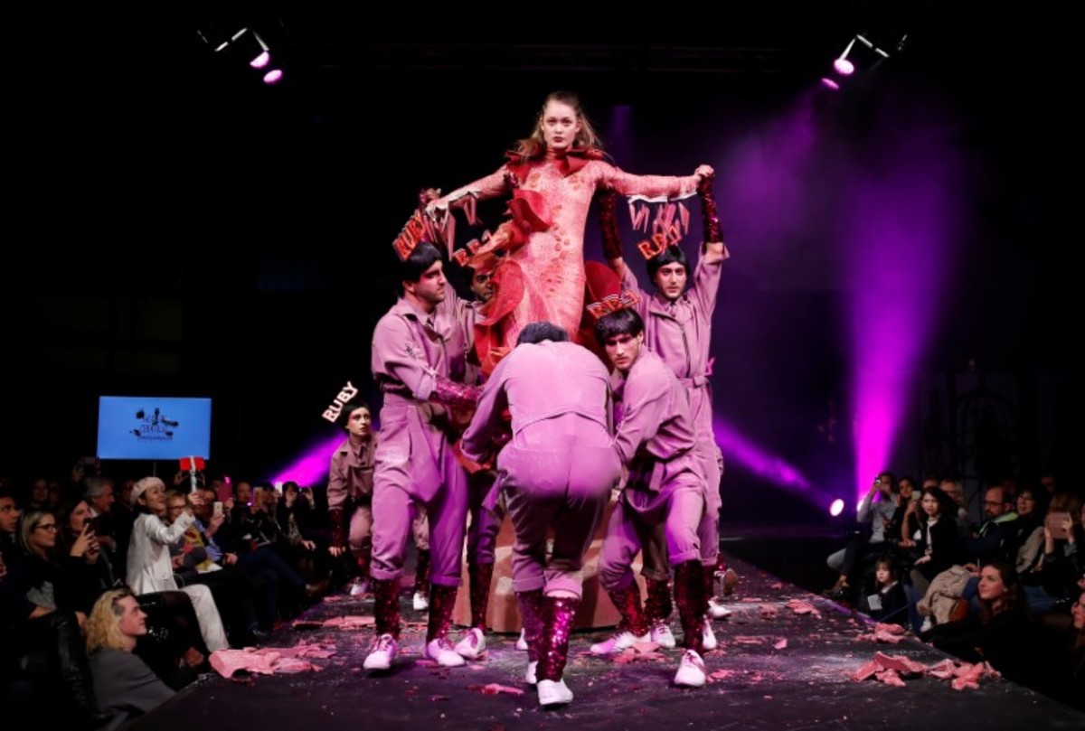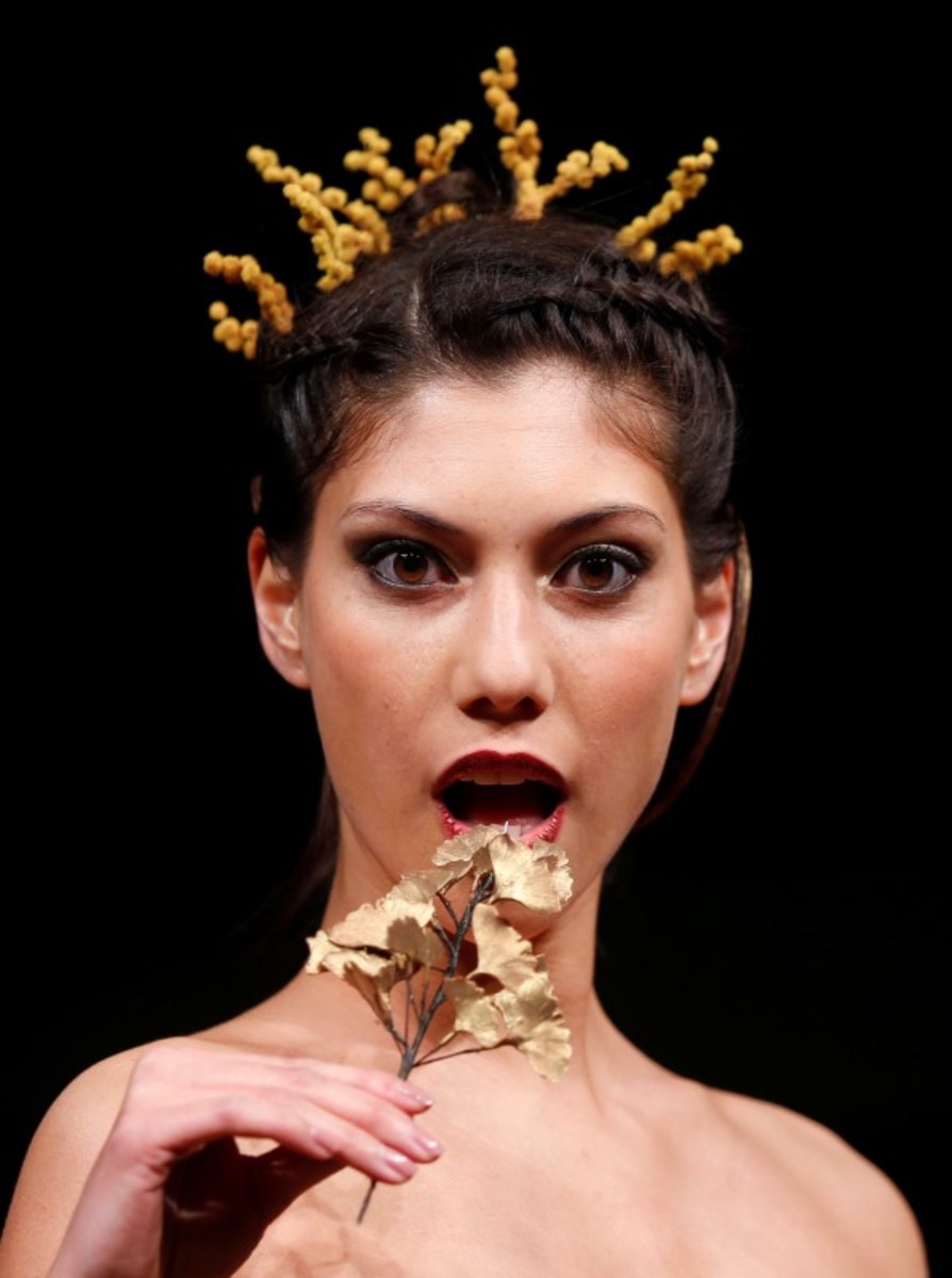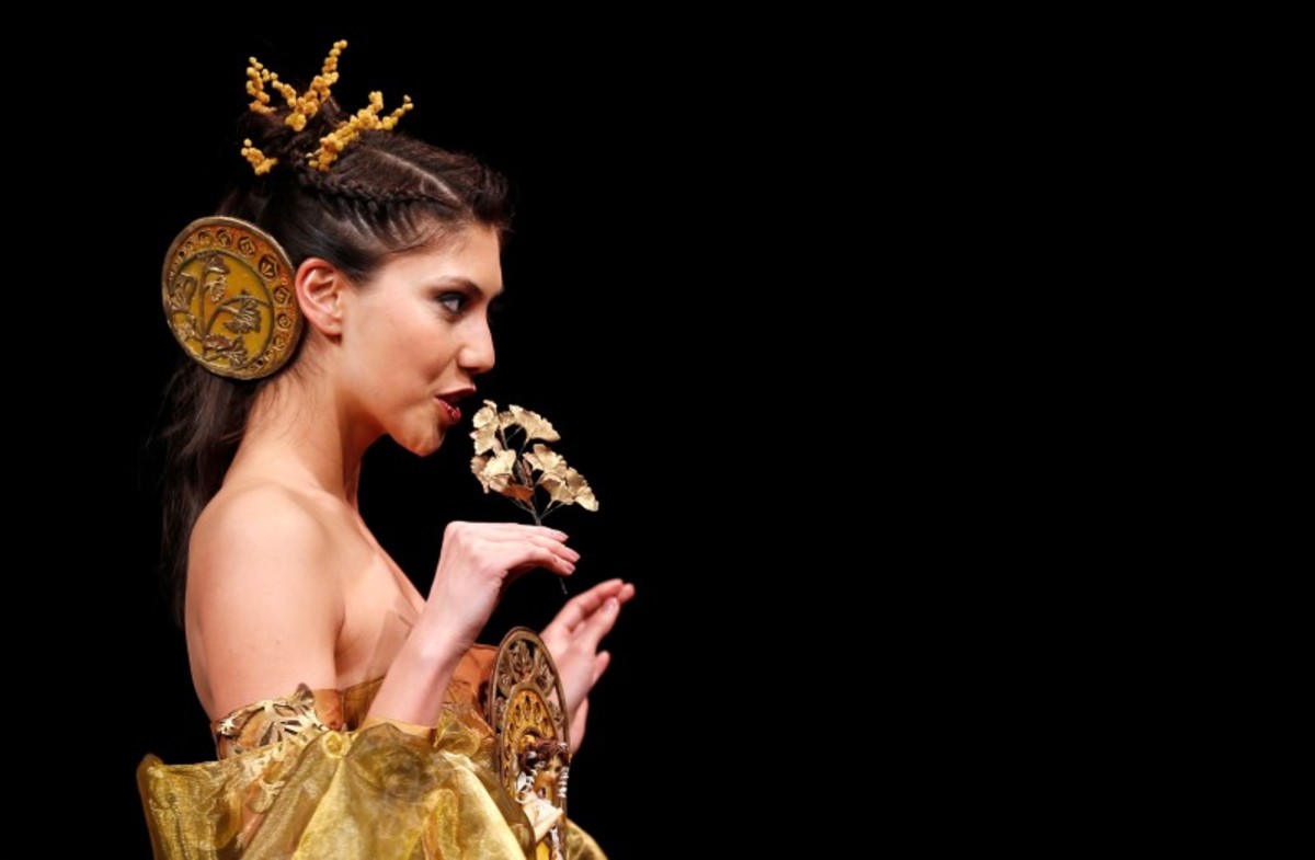 BRUSSELS (Reuters) - In a dream mix for sweet-toothed fashionistas, models strutted the catwalk in Brussels draped in fanciful clothes made with chocolate.