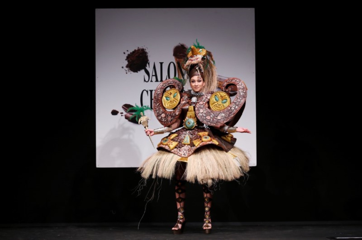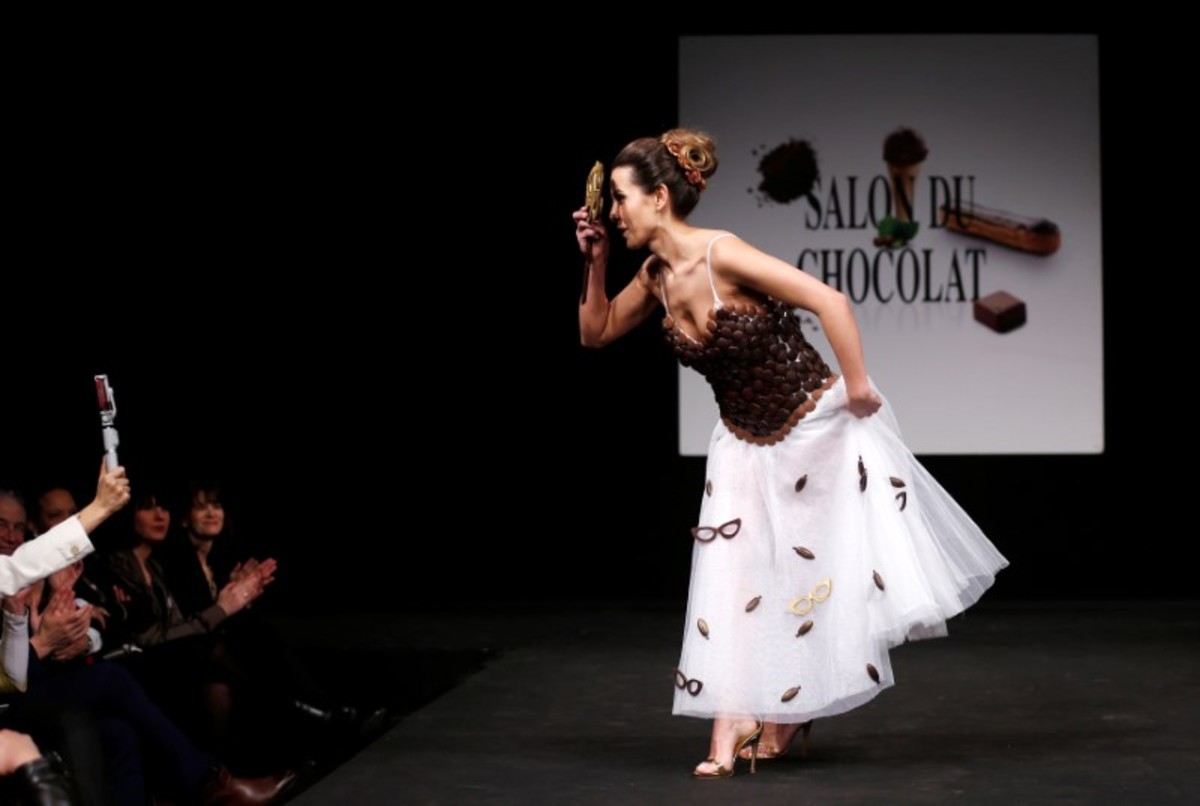 The fashion show, which teams designers with chocolatiers and pastry chefs from more than 15 countries, kicked off the annual three-day "Salon du Chocolat" chocolate fair in Belgium's capital on Thursday evening.