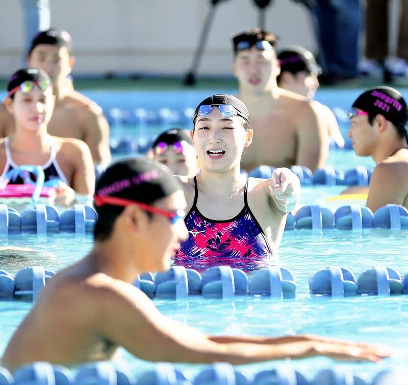 Nihon University's swimming club, to which Ikee belongs, made its training open to the public Saturday at a swimming pool in Meguro Ward, Tokyo.
