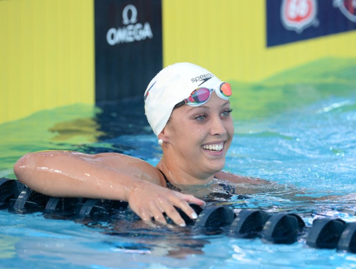 The 21-year-old had a sizzling first 50m and turned in 27.90 before going on beat the previous mark of 58.10 set by Canadian Kylie Masse.
