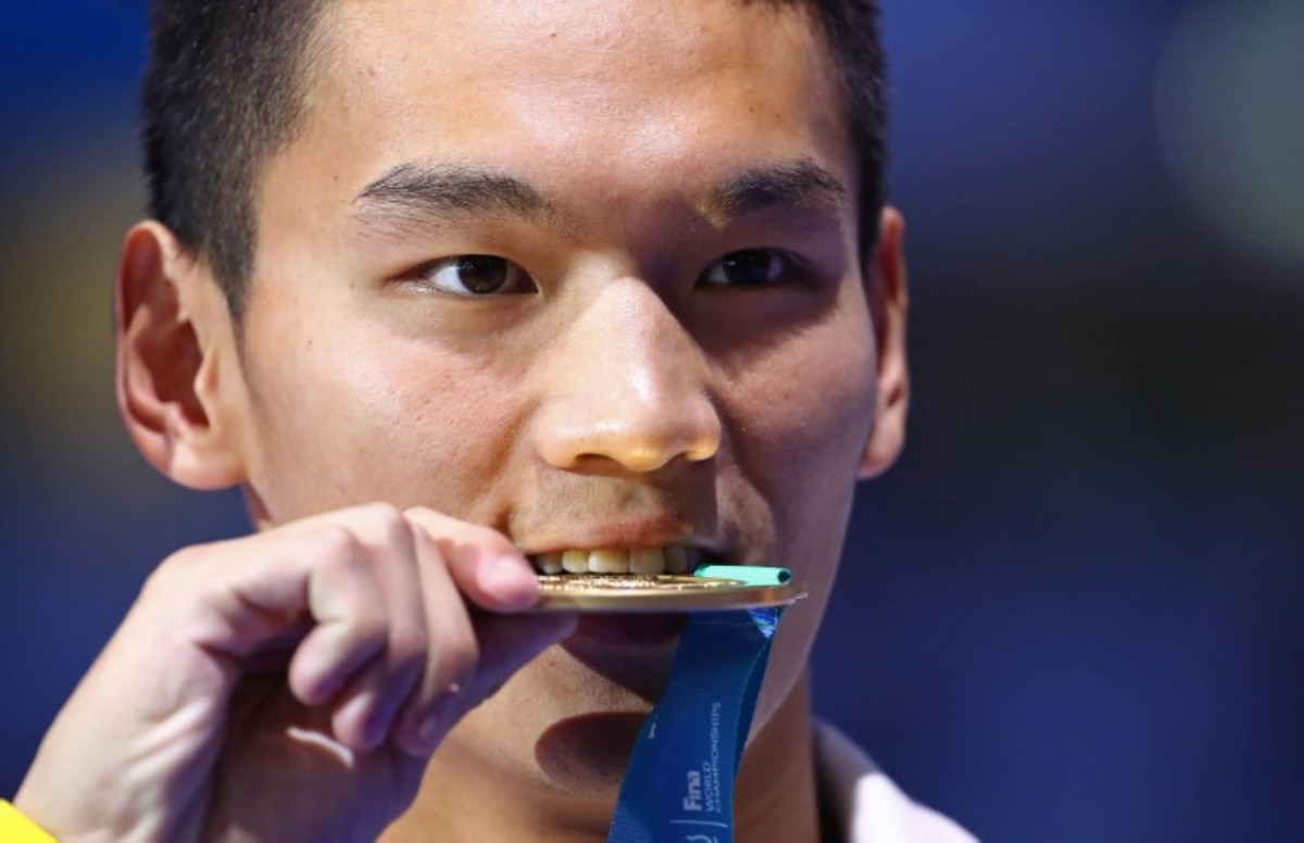 The Chinese, who has now won two of his four individual freestyle tilts this week, powered to gold in an Asian record time of one minute 44.39 seconds.