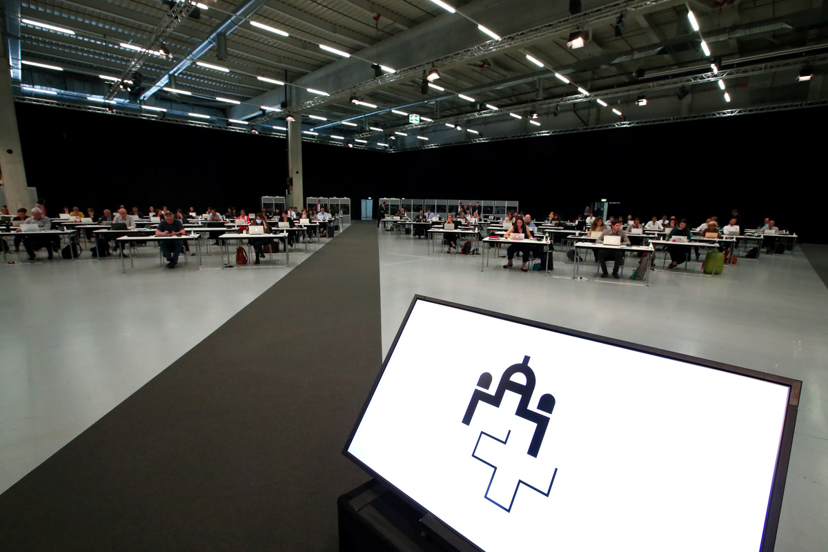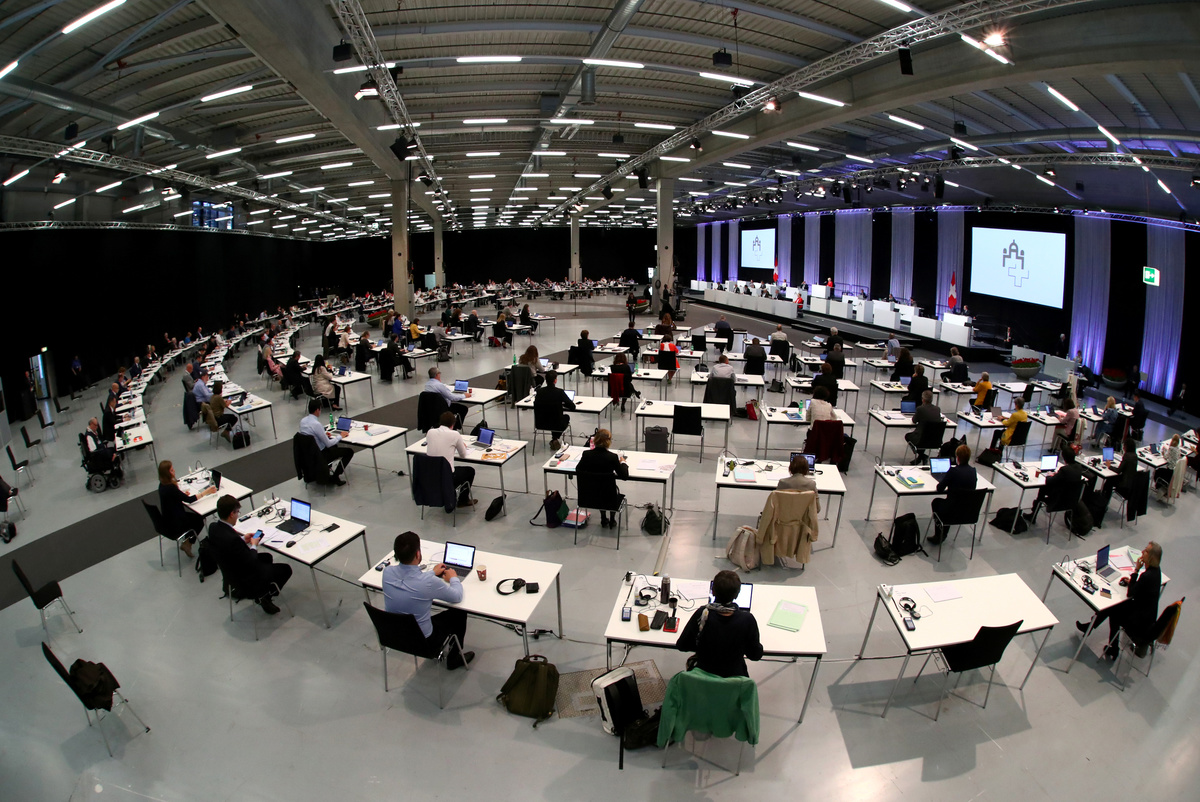 With some lawmakers wearing protective face masks, parliament convened at an exhibition centre rather than its normal building so members had extra space to maintain social distancing rules.