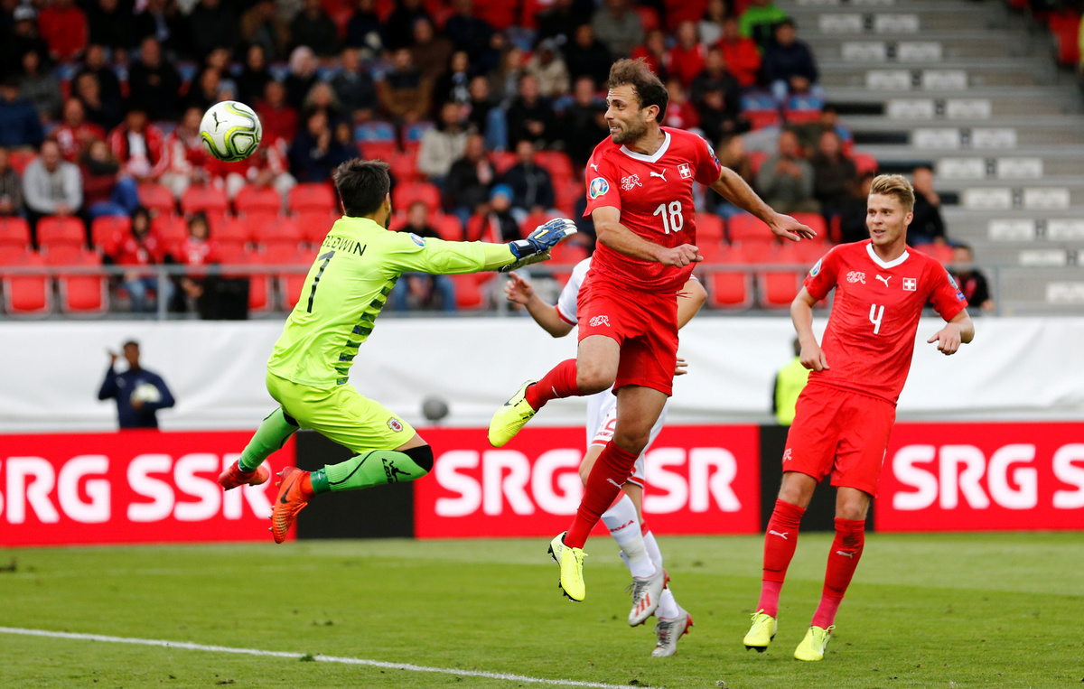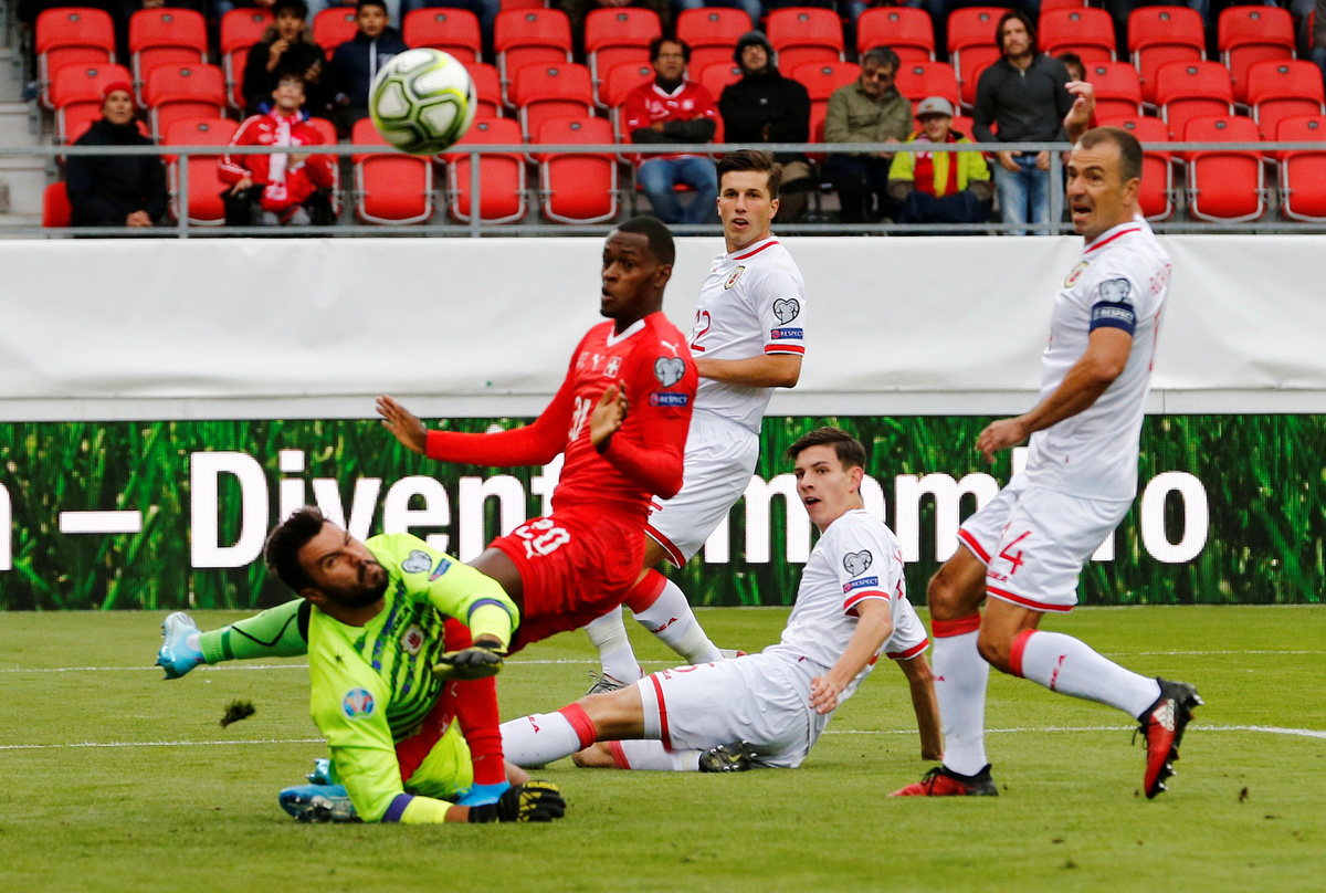 SION, Switzerland (Reuters) - Switzerland took 37 minutes to break down a stubborn Gibraltar side before easing to a 4-0 win while Denmark were frustrated by Georgia in a 0-0 draw in Group D of the Euro 2020 qualifiers on Sunday.