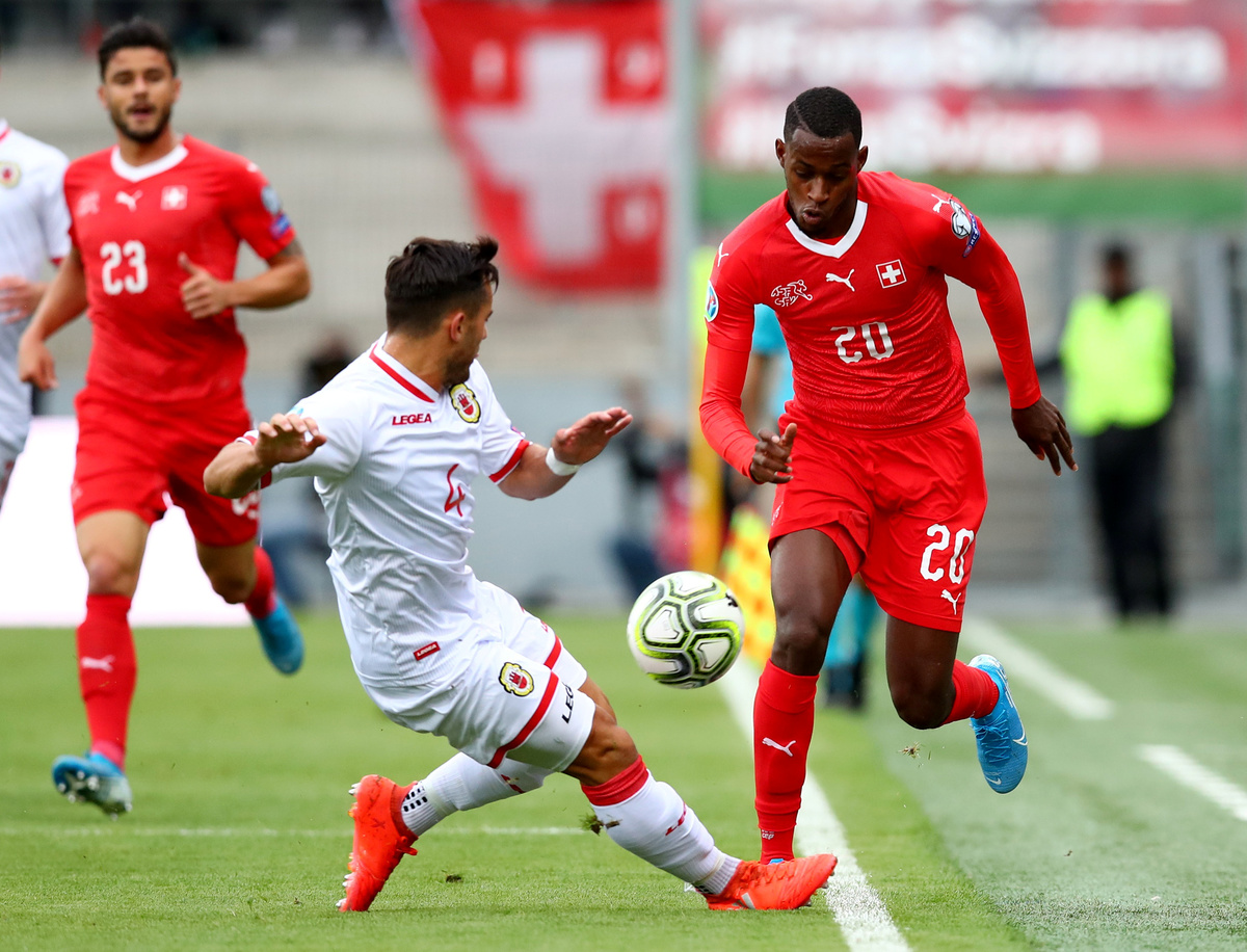 Soccer Football - Euro 2020 Qualifier - Group D - Switzerland v Gibraltar - Stade Tourbillon, Sion, Switzerland - September 8, 2019 Switzerland's Breel Embolo in action with Gibraltar's Roy Chipolina REUTERS/Denis BalibouseSoccer Football - Euro 2020 Qualifier - Group D - Switzerland v Gibraltar - Stade Tourbillon, Sion, Switzerland - September 8, 2019 Switzerland's Edimilson Fernandes in action with Gibraltar's Jack Sergeant REUTERS/Denis BalibouseSoccer Football - Euro 2020 Qualifier - Group D - Switzerland v Gibraltar - Stade Tourbillon, Sion, Switzerland - September 8, 2019 Gibraltar's Louie Annesley in action with Switzerland's Loris Benito REUTERS/Denis BalibouseSoccer Football - Euro 2020 Qualifier - Group D - Switzerland v Gibraltar - Stade Tourbillon, Sion, Switzerland - September 8, 2019 Switzerland's Loris Benito in action with Gibraltar's Liam Walker REUTERS/Denis BalibouseSoccer Football - Euro 2020 Qualifier - Group D - Switzerland v Gibraltar - Stade Tourbillon, Sion, Switzerland - September 8, 2019 Switzerland's Edimilson Fernandes in action REUTERS/Denis Balibouse