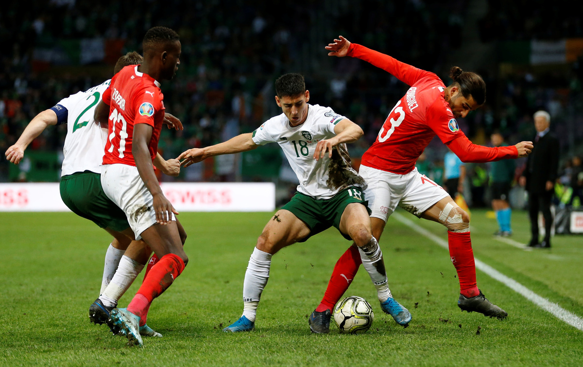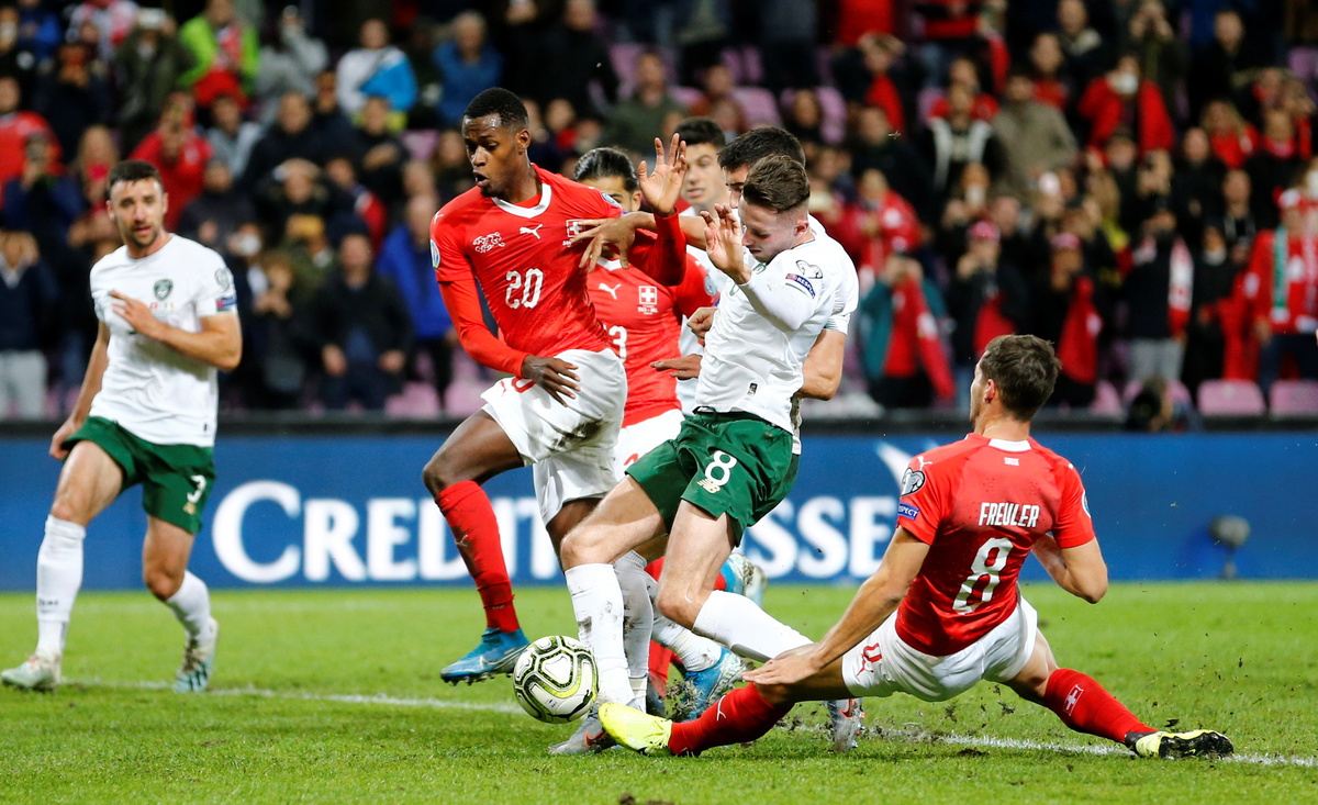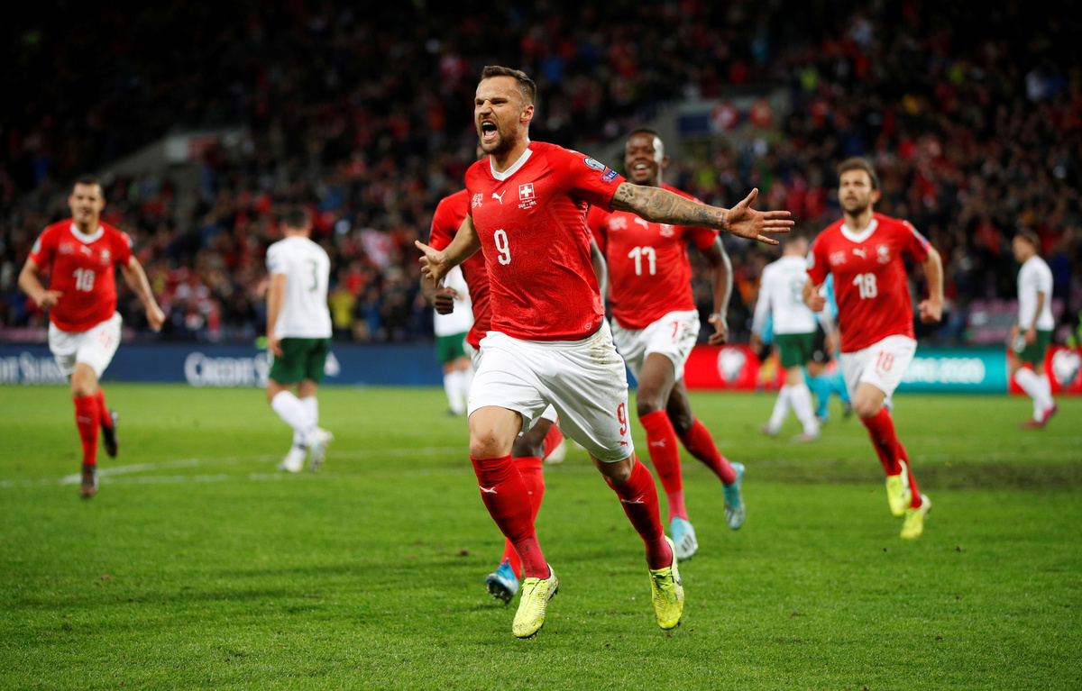GENEVA (Reuters) - Switzerland revived their hopes of qualifying directly for Euro 2020 and denied Ireland the chance to book their place early with a nervous 2-0 win in rain-soaked Geneva on Tuesday which threw their group wide open.