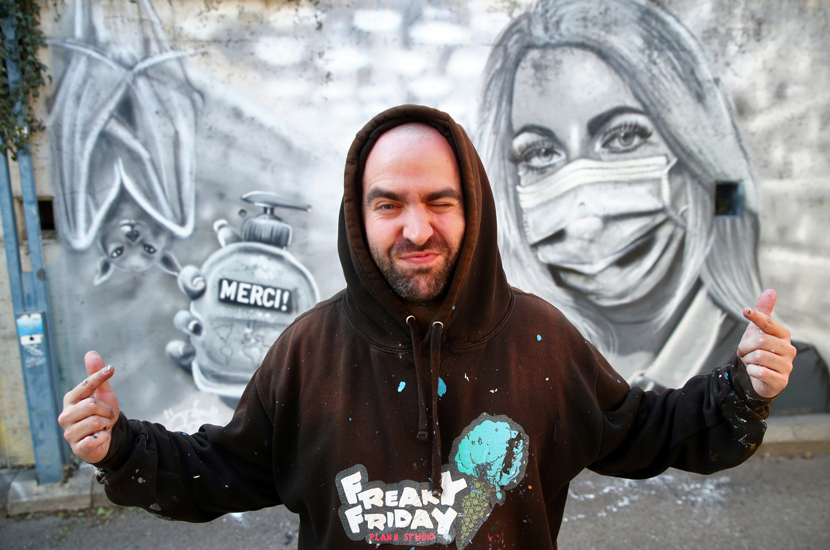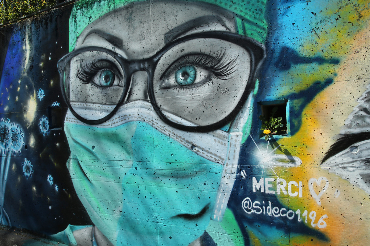 Street artist David Perez has found his own way to pay tribute in Switzerland to the people he regards as the unsung heroes of the coronavirus crisis.