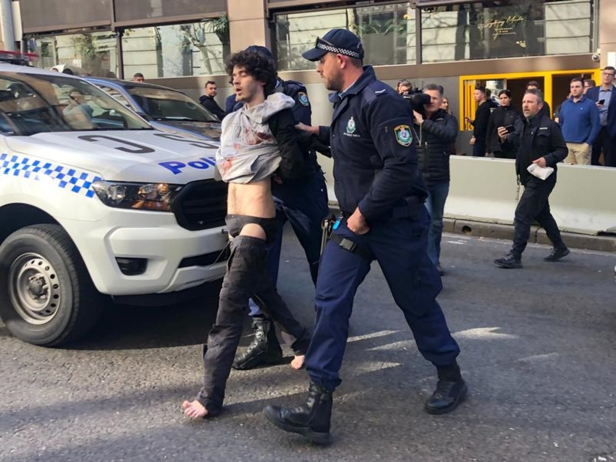 He departed down fire stairs, dropping another bloodied knife on the way, and began his frenzied assault on Sydney.