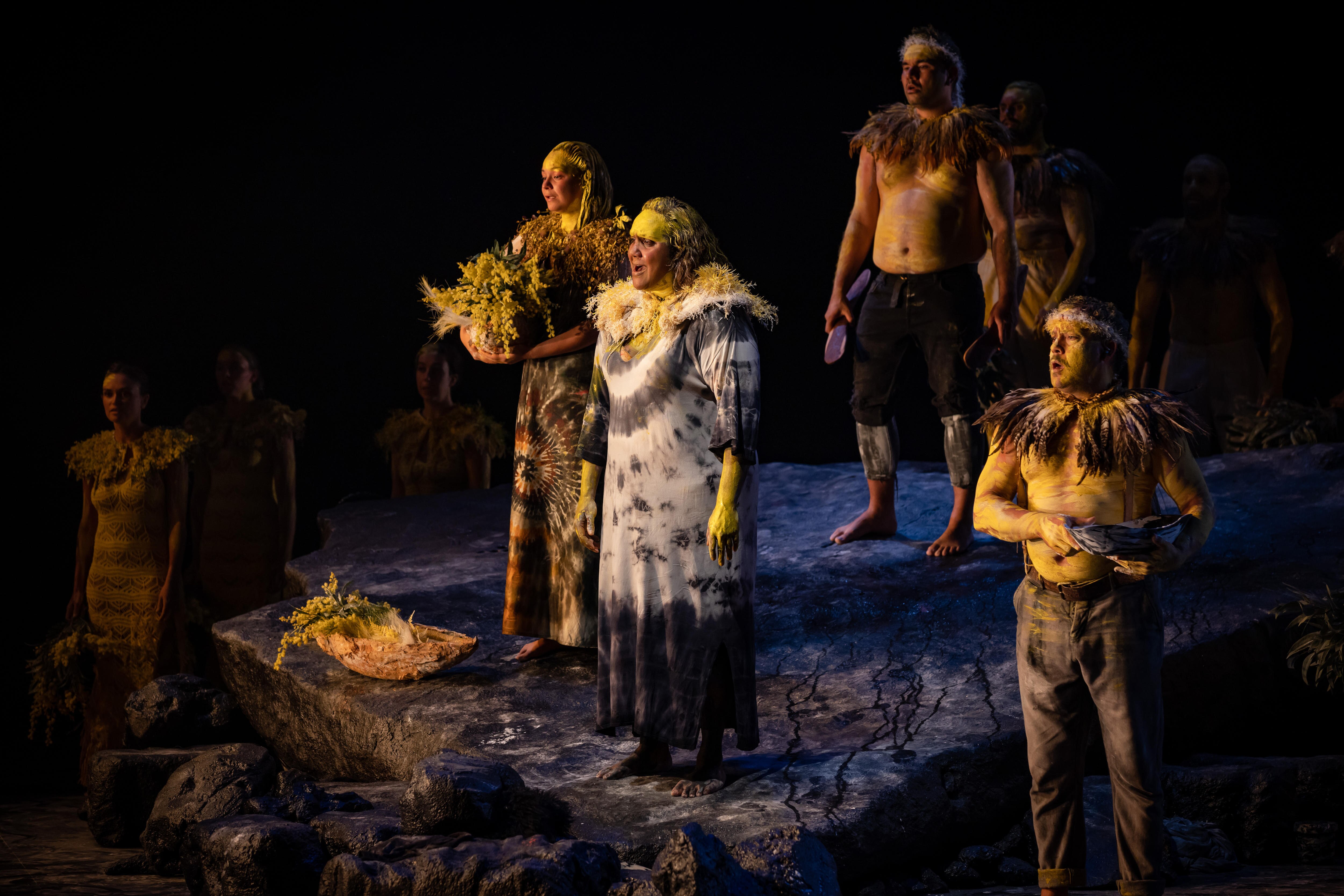 This year's program, under new festival director Olivia Ansell, carried on Enoch's commitment to programming First Nations companies and artists, and the pro-Palestine narrative of the boycott took on extra resonance when seen alongside these artists' stories — in works like Bangarra Dance Theatre's collaboration with Sydney Theatre Company, Wudjang: Not the Past — a story of culture, colonisation and resilience; and in Vigil: Songs for Tomorrow, an evening of "contemporary ceremony, song and fire" led by First Nations artists at a site of first contact (now called Barangaroo Reserve) on the eve of January 26 — a day that marks the beginning of colonisation in this country.